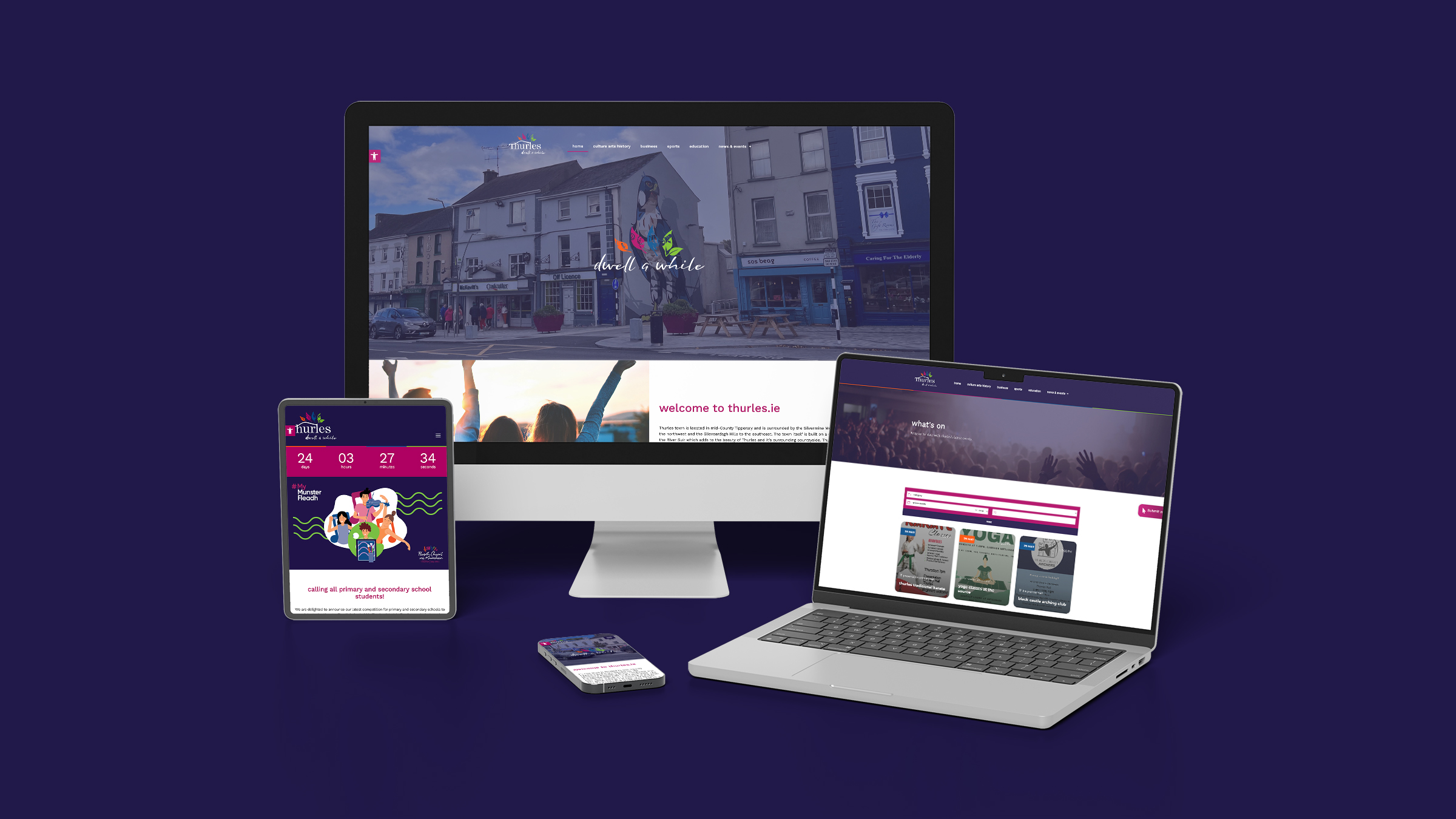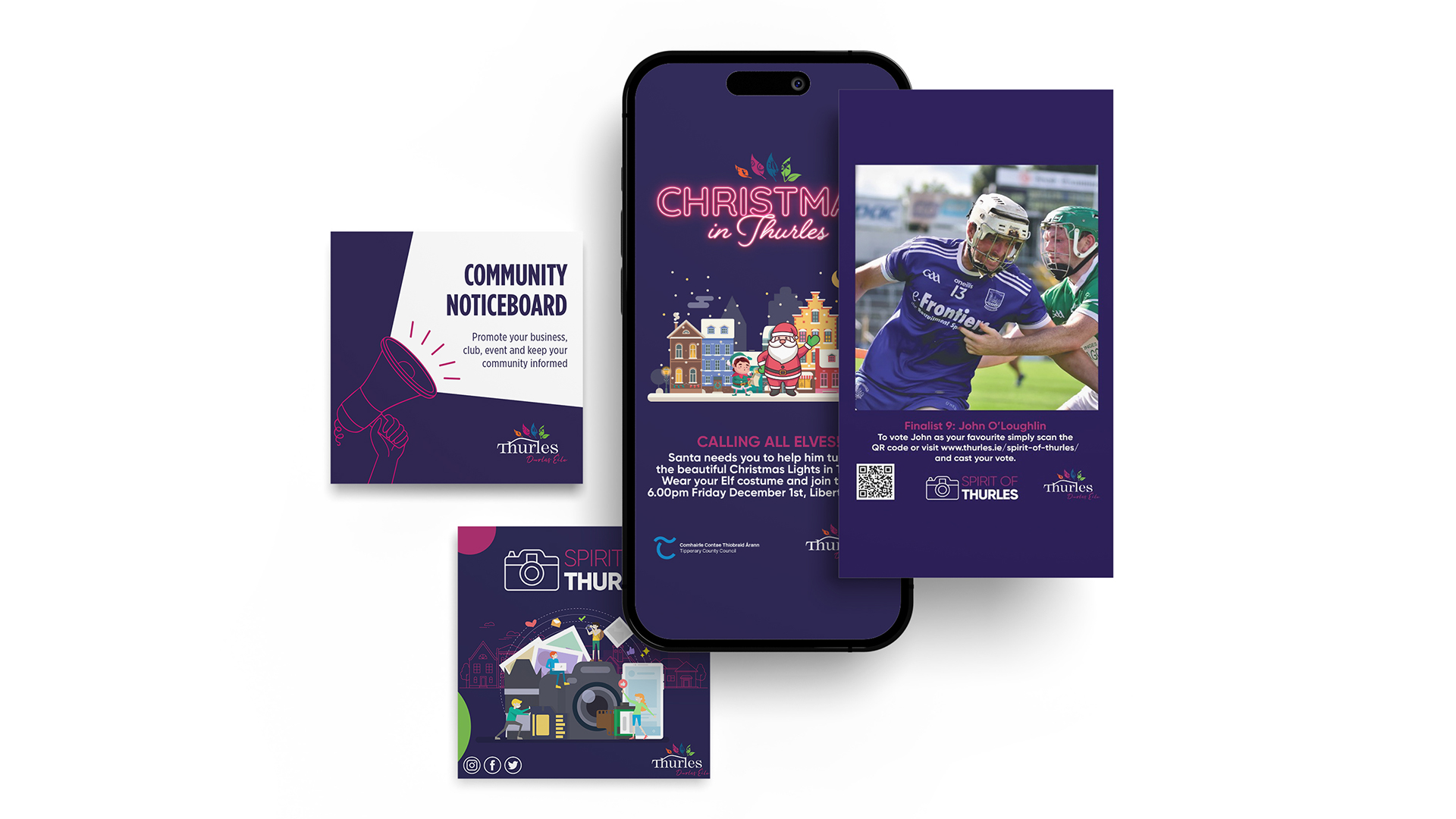 Designedly has partnered with the Thurles Templemore Municipal District for many years, designing Town brands, literature, digital presence, and ongoing management of their social media channels, including creation of tailored content campaigns that highlight local culture, businesses, and community events while building sustained engagement and civic pride. Over time, this relationship expanded into deeper brand development, shaping a modern visual identity and messaging system that captures the town’s heritage, personality, and future ambitions. We are hugely proud to have developed the Thurles.ie website, creating a central digital hub that informs residents, welcomes visitors, and supports wider community initiatives with clarity, accessibility, and a cohesive brand experience.